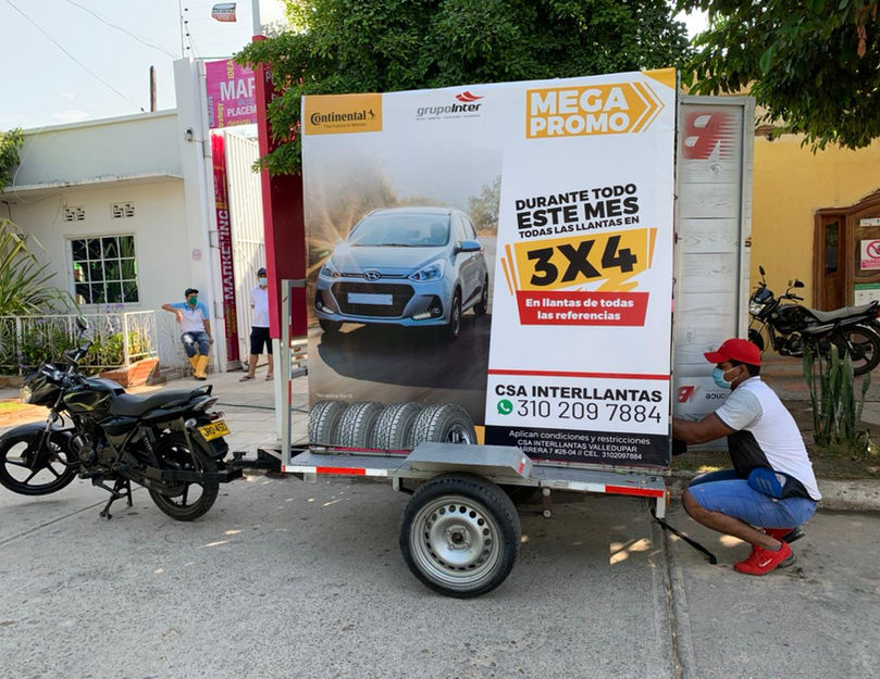 La moto valla móvil es un medio publicitario en movimiento, con un trailer adecuado para transportar el mensaje de tu negocio o empresa, ofreciendo un alto impacto, flexibilidad, versatilidad, cobertura y bajo costo.